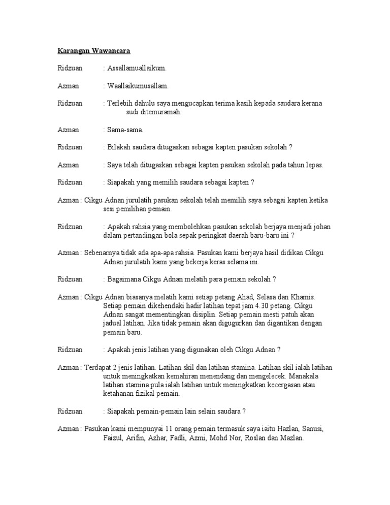 Contoh Karangan Temu Ramah Sejarah. Contoh soalan temubual tokoh sukan bola contoh soalan temubual tokoh sukan negara contoh soalan. Contoh karangan dialog pt3 spm.